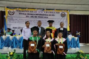Dili, loron 07 fulan Fevereiru tinan 2025, Sua Exelénsia Sekretáriu Estadu Ensinu Sekundáriu Jerál no Ensinu Sekundáriu Tékniku Vokasionál Sr. Domingos Lopes Lemos, partisipa iha serimónia graduasaun ba dala-13 Eskola Téknika Informátika Dili (ETI) Dili…
